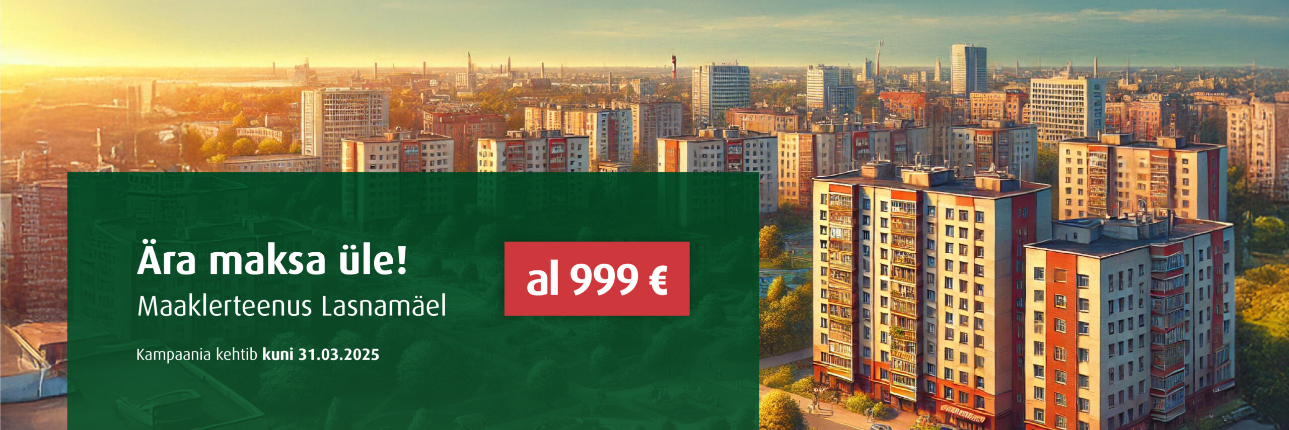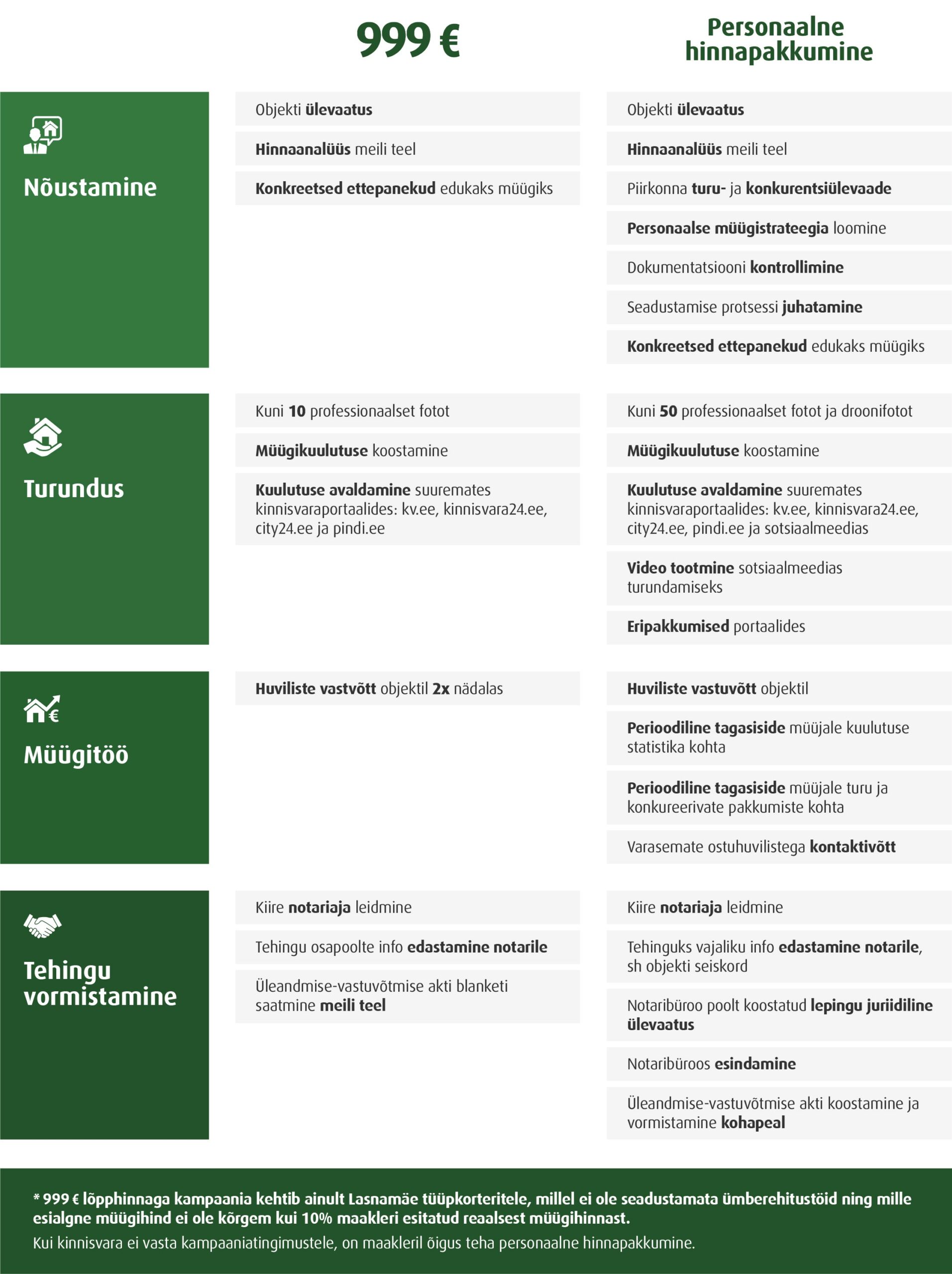 *999€ lõpphinnaga teenuspaketi kampaania kehtib ainult Lasnamäe tüüpkorteritele, millel ei ole seadustamata ümberehitustöid ning mille esialgne müügihind ei ole kõrgem 10% Pindi Kinnisvara müügikomitee poolt määratud reaalsest müügihinnast.