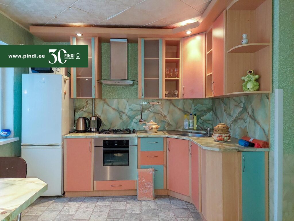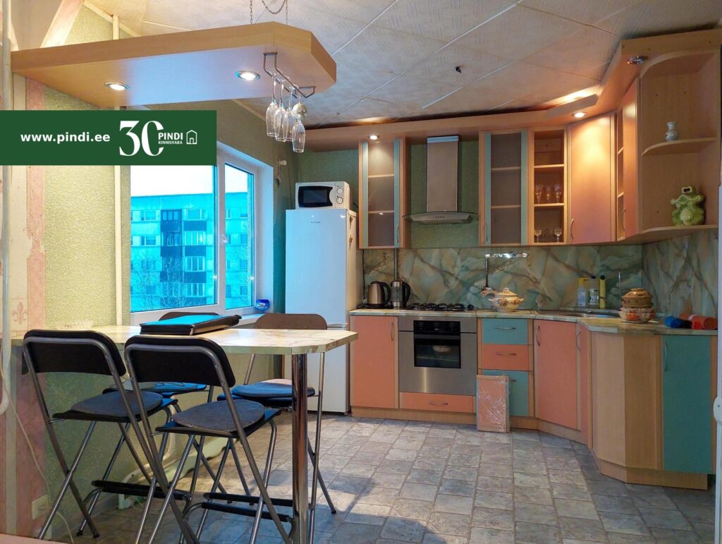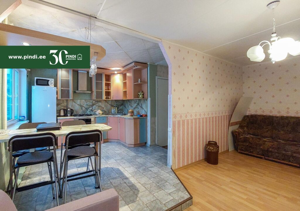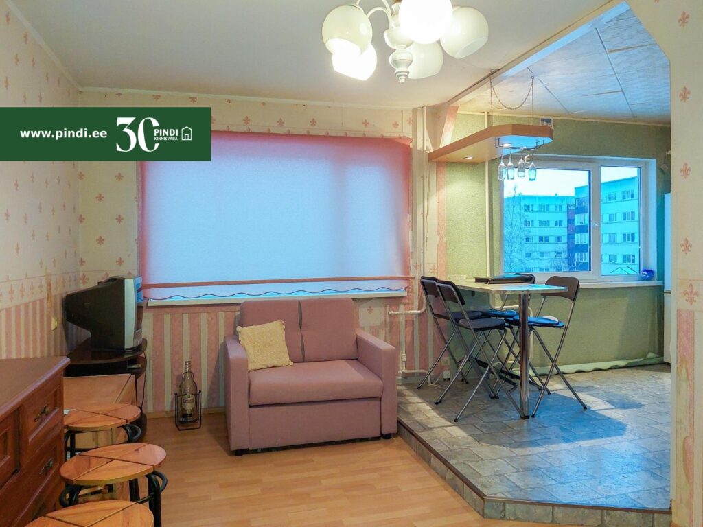 Mööbel, avatud köök, pakettaknad, köögimööbel, rullmaterjal, wc ja vannituba eraldi, vann, loomulik ventilatsioon.