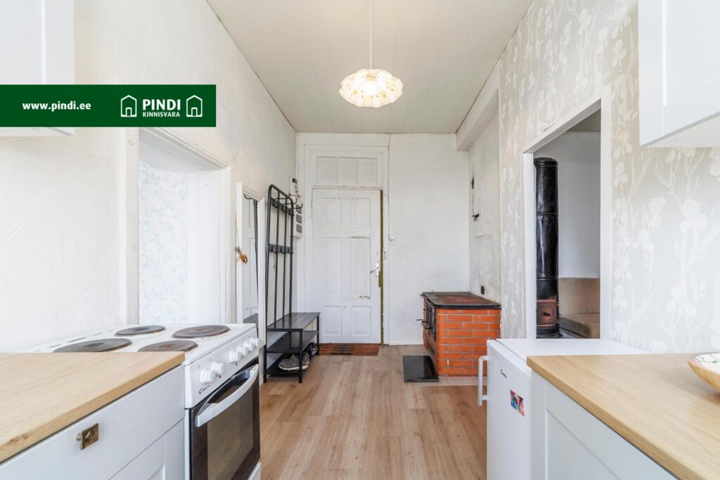 Kõrged laed, köögimööbel, kivi, boiler, dušš, loomulik ventilatsioon.