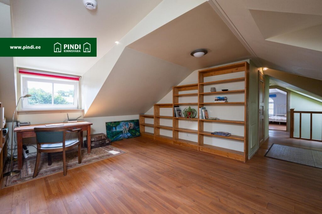 Trepihallist edasi jõuate läbikäidava kabinetini, mis sobib suurepäraselt kodukontoriks või lugemistoaks.