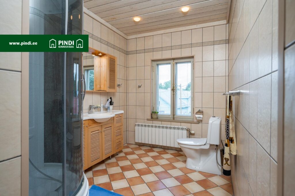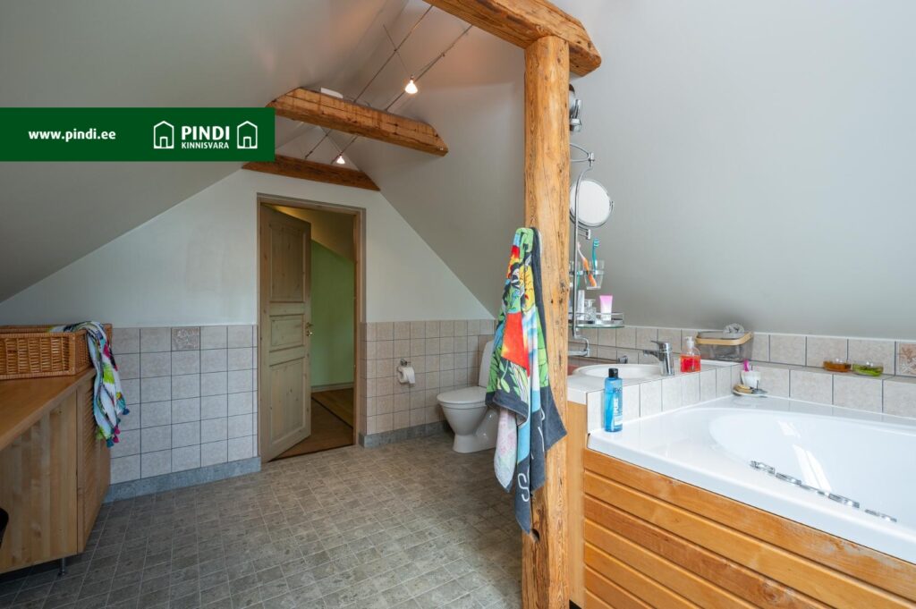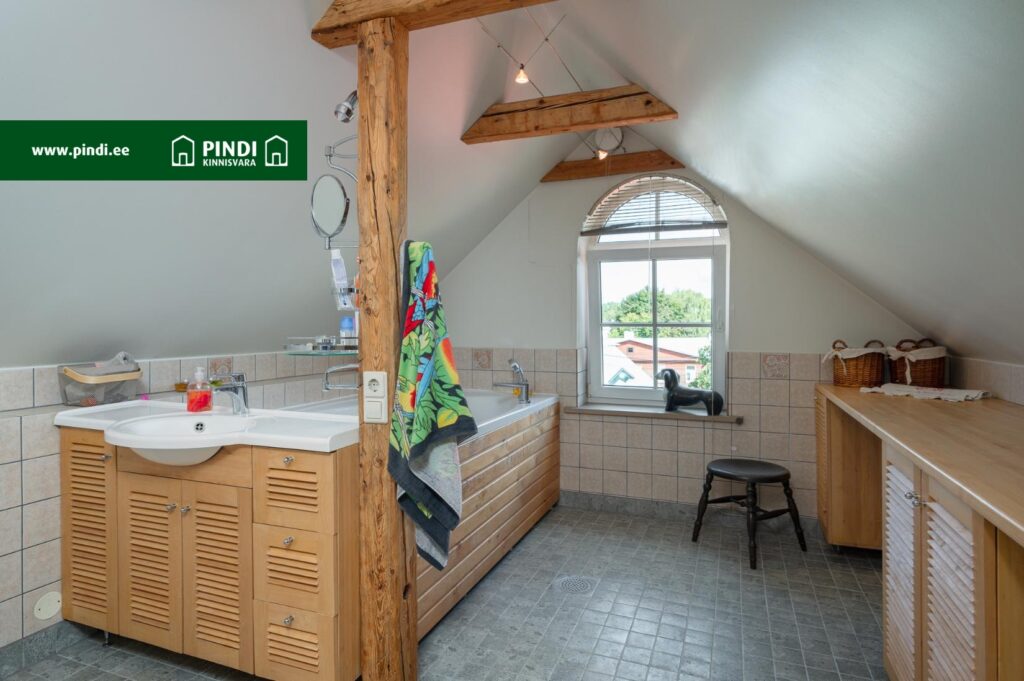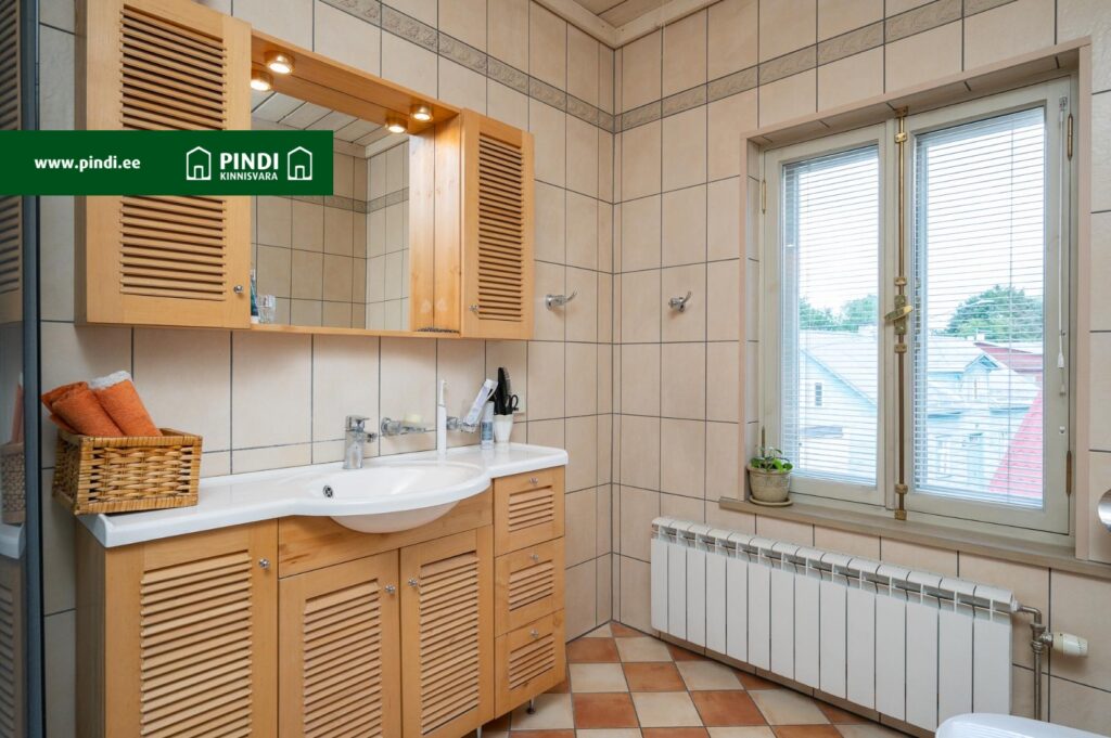 Ülemisel korrusel asuv vannituba on ruumikas ja elegantselt sisustatud. Siin on vann, ning piisavalt ruumi kõigi pereliikmete tarvikute hoiustamiseks.