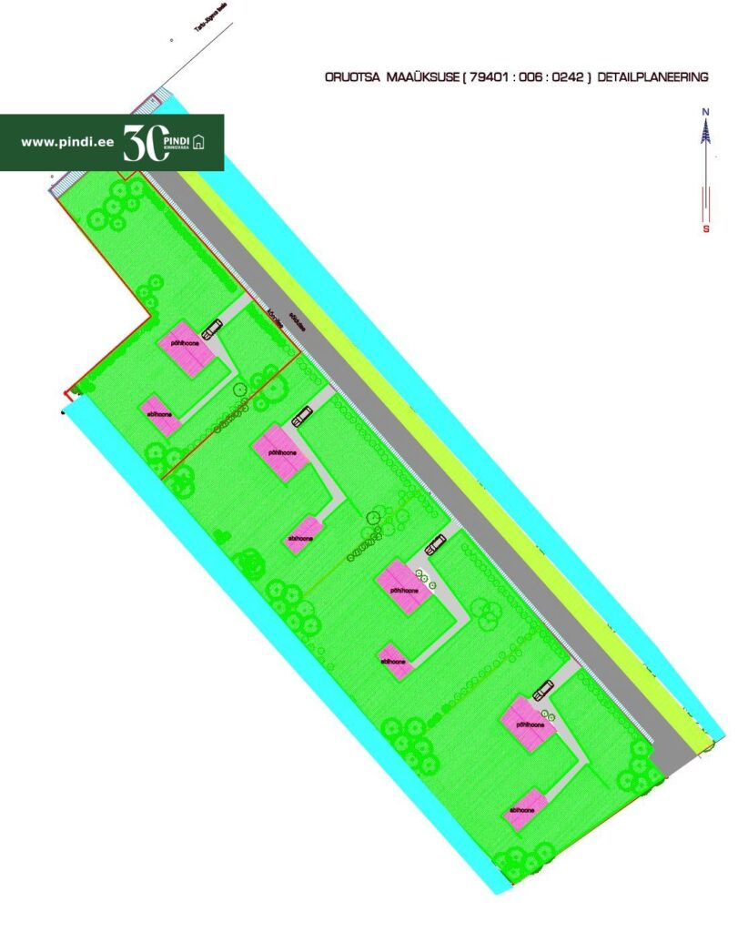 Detailplaneeringuga 4 elamukrunti Tartu linnalähedases uusarenduses – ühe krundi hind koos transpordimaaga 41 125 €.