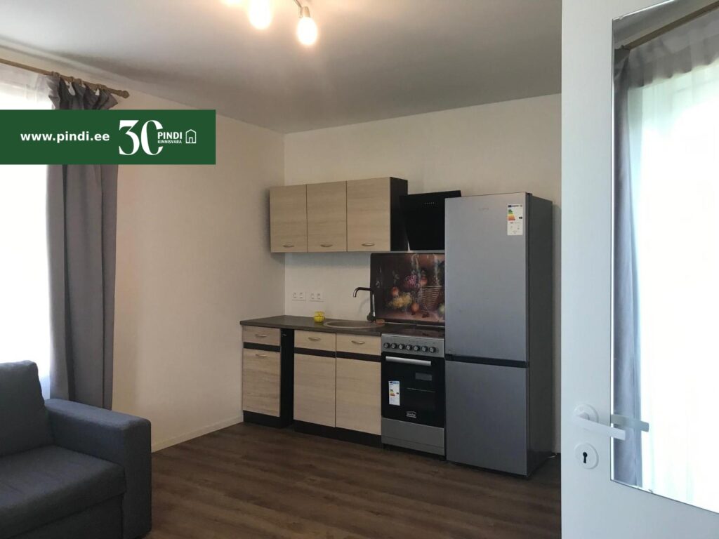 Üürile anda 2-toaline valgusküllane möbleeritud korter 2/1 korrusel: avatud köök-elutuba, magamistuba ja duširuum-WC, pinda kokku 32,4 m².