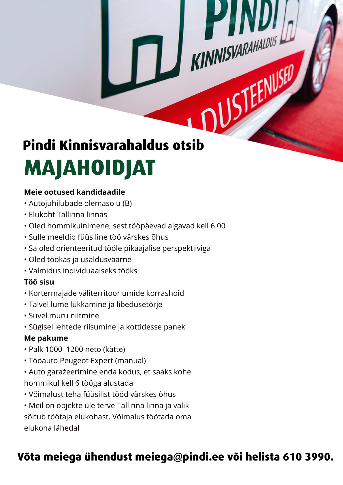 Otsime TALLINNASSE korterelamute majahoidjat!